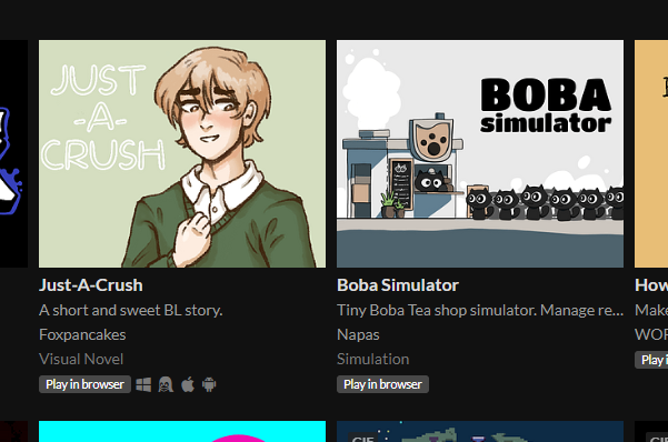 if anyone is interested, if you like queer stories, you should for sure check out butterfly soup, u get a lot of options and the story is very cute and immersive, the game took me a few hours, so it's a few hours of entertainment!! <3